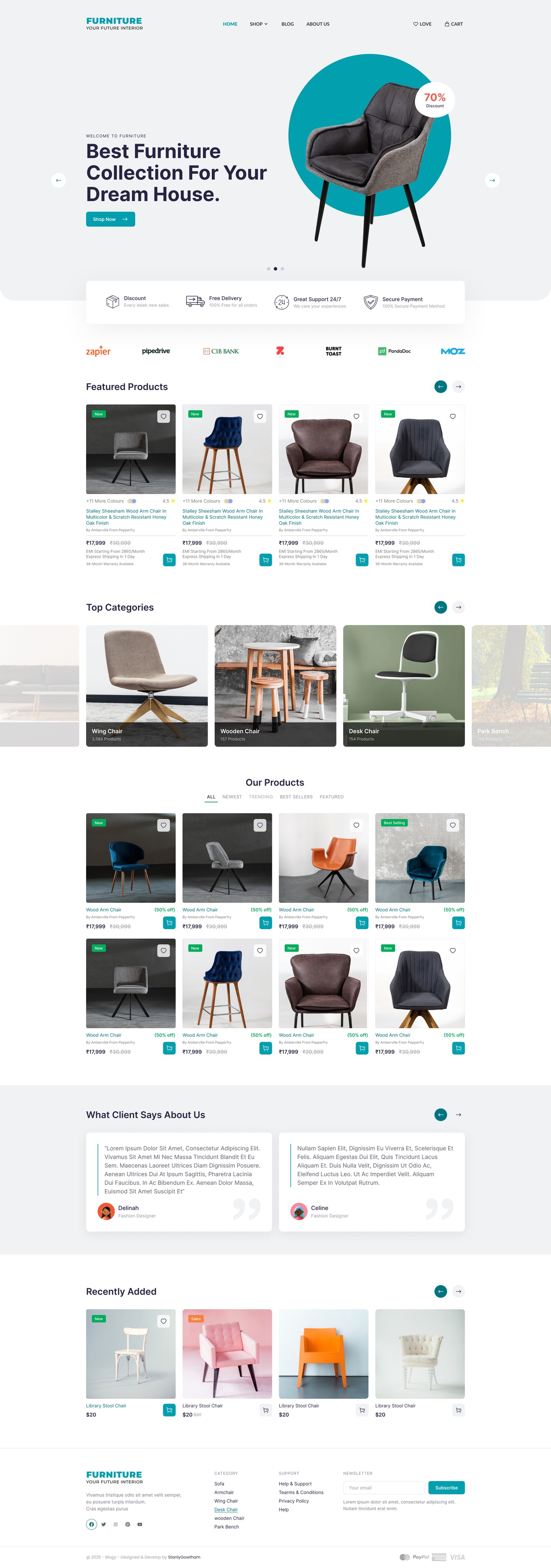 Integrated smooth navigation, smart search, wishlist, and product filters to help users explore, compare, and purchase furniture with ease both on desktop and mobile.